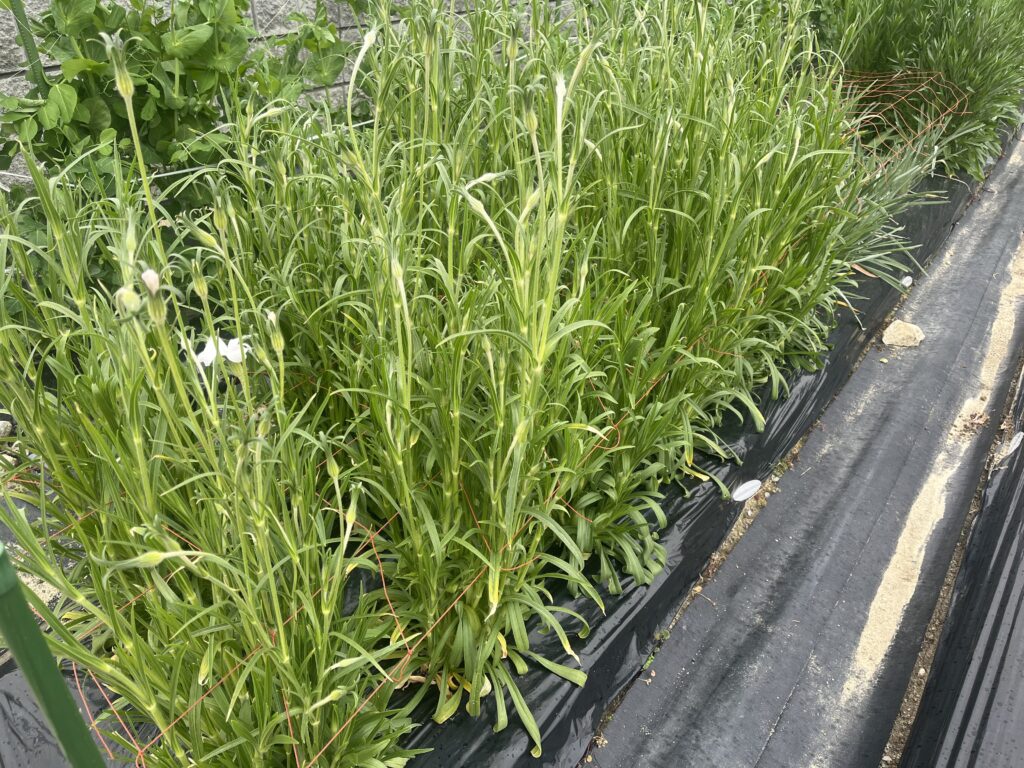 切り花を作っていて一つ思うことは、若めの苗を適切な時期に植え付けるのが重要だと感じます。若い苗の新鮮な根が定植後根付きやすく伸長しやすいので、根っこという土台をまずしっかり作り、それに伴い地上部の株が出来上がり、またそれに伴い多数の花を咲かせてくれるように感じます。