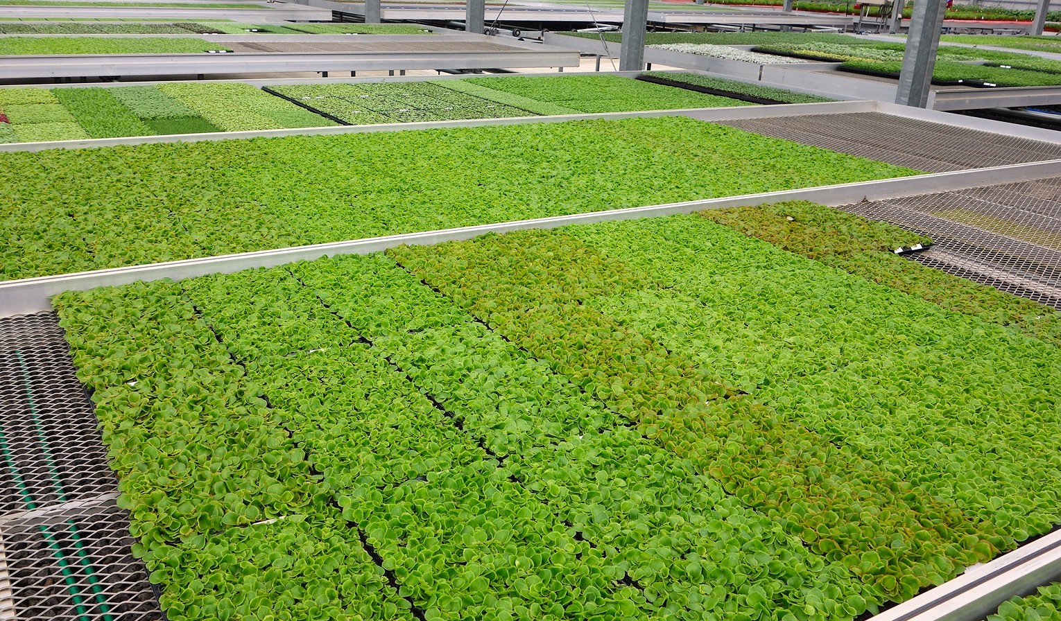 タネから育てる実生系の植物は、花以外にも野菜苗や切り花苗のプラグ生産を行っており、全国のプロの生産者様へ高品質なSSプラグをお届けしております。また、栄養系品種や直植え出来る大きめサイズのプラグを大面積の緑化用として受注生産しております。50年以上の実績とノウハウを基に、高品質な苗をお届けします。